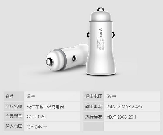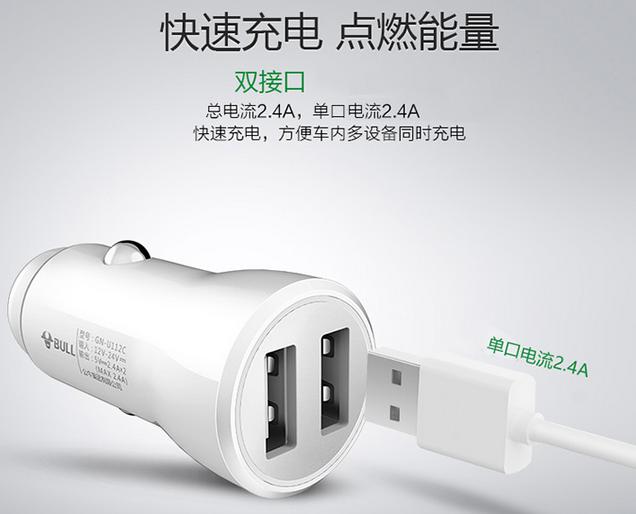 公牛BULL车载充电器双USB口 5V GN-U112C