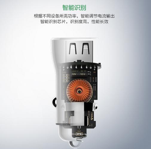 4、智能识别:根据不同设备所需功率,智能调节电流输出,智能识别芯片,识别度高,性能长效,充分保护手机电池和电路,使车载充电器更加安全和长久。
