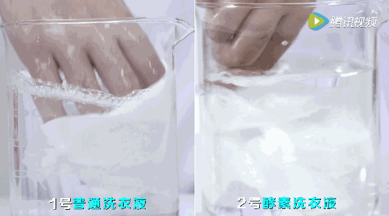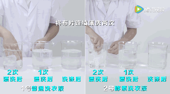 武侠小说里面的高手,一般都是来无影去无踪,而在洗衣液的圈子里也同样如此,少泡无残留才是王道,还是实验见分晓吧!首先在两个烧杯各自加入洗衣液、布片,并充分搅拌。