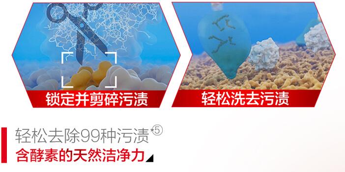 这就是来自纤维酵素的绝招“凌波微护”的功效,在洗衣过程中,经过特殊工艺加工的纤维酵素可以去掉衣物纤维中的污渍时,还不会对衣物纤维造成损伤!